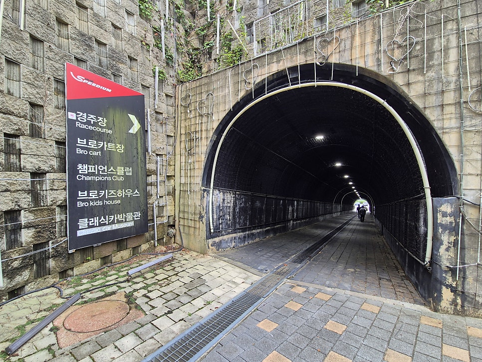 콘도 지하로 내려오면 경기장으로 가는 길이 나온다. 이 길을 따라 쭉 가면 터널을 통해 경기장 패독 쪽으로 이어지는거 같다. 문제는 레이스가 있는 기간에는 안내요원이 길을 통제하고 특정 티켓이 있는 사람만 통과시키는데 어떤사람이 들어갈 수 있는지는 모르겠다.