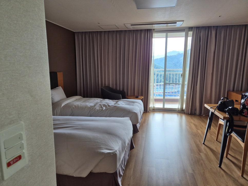 객실은 크기마다 다르겠지만 우리는 싱글베드 두개와 작은 방이 딸려있는 객실이었다. 객실 선택권은 없었으므로 부모님과 나 정도 3-4인 가족 숙박하기에는 크게 무리는 없어보인다. 샤워시설에 욕조는 없다.
